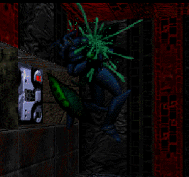 Your presence has obiously been detected, and the two primary control rooms have been fortified. The console directly to your left will open the cell door to the lower prison level. You might want to listen at this door for signs of activity. The control key exists somewhere near the central computer core.