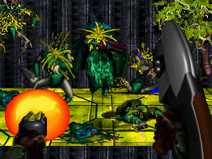 Alpha Black! How the hell are you? Commander Jarvus here. Boy is it good to see you. It took some doing, but you’re out as promised. I know; I know, 14 years late but at least you are again among the living. Your old buddy Matrix is not only still around, he is now more powerful than you can imagine. There is much to tell. I will update you as we go along. For now it’s standard KILLING TIME! Commander Matrix has become Battle Lord of many sectors. He is trying to change our way of life. You know fun, fun, fun. He considers himself a Supreme Dictator and plans to monopolize all business trade and military functions. Worst of all, he promises a PC in every home!!! No way can we let him accomplish that!! Since he has become War Lord, he feels himself to be unstoppable. He has been manufacturing military drones to keep order throughout those sectors under his control. We need to stop him and you, my friend, are the Marine to do it. Before your memory was wiped you stumbled on information about Matrix’s devious mechanations. You were not sure exactly what it all meant. You noticed that some of your Raptor mates were starting to change. They would go on leave and when they returned it was as if they had been transformed. Some of them even tried to cross you. Once you denied everyone’s leave, causing Matrix to believe you knew about his secret project. You guys never did see eye-to-eye. This whole area has been a training ground for you to sharpen your knowledge on some of his military forces, creations spewed from the Devil himself! Now it is time. I am sending you to Area 89. The area has technical information that needs to be obtained to help us win this war. Area 89 is heavily guarded so I will try to send rebels and ammo as needed. When you took leave to search for data on your Group’s radical transformations; Matrix was ready for you, he captured you. He wanted to make you his ultimate fighter. Thank God I got to you first otherwise you may have been ordered to hunt me down! Prepare for transport . . . Commander Jarvus Out.