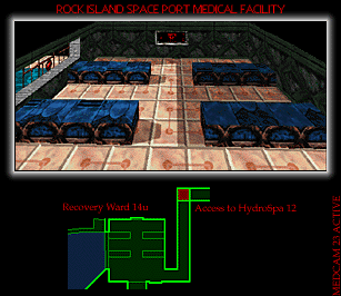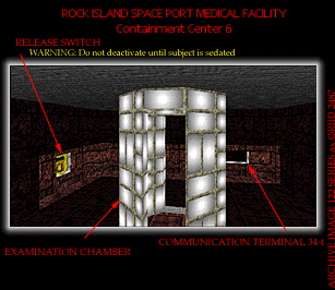 The pirates have taken over this laboratory, and have destroyed my link to the door operation circuits. I've managed to reroute some of the wiring, though, and have coopted controllers for areas you are not needed in for use as manual overrides for the laboratory door. There are two of them, but there are no visual sensors in either of those areas, so I cannot show you what they look like. Although it is currently offline, the communications terminal in the laboratory seems to be teleport-enabled, so I should be able to transport you to the engineering level of the outpost from here. I will attempt to restore power to it before you arrive.