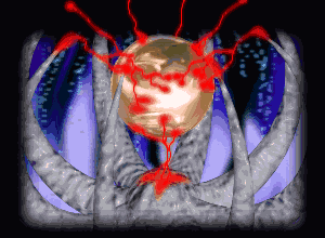 I am not able to communicate with my people, so you are warned that you may be perceived as hostile. If the reactor should explode, everyone aboard will die. I am willing to accept the loss of a few of the Ygn'oml (your AI called them Galaxans) in exchange for the survival of the ship. Lastly, be aware that the entire forward sensor array section has been evacuated of oxygen to minimize risk of combustion. You will find funtional emergency oxygen dispensers at various locations around the area. On behalf of the race of Ygn'oml, I thank you for what you are doing. Prepare to transport.