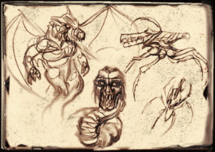 Journal Entry 5 February, Year of our Lord 857 The fighting continues. I have but three knights left, and minimal supplies. Unless reinforcements arrive soon, we will not survive more than four days. We are fighting more than Morgana's black knights. There are all kinds of unholy beasts being unleashed upon us. Large winged creatures hurling balls of fire, snakes cloaked with the face of death, and wicked spider-like creatures able to scale our highest walls...
