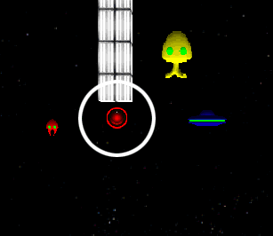 ERODROME DELIRIOUS 137 Vorax Fun Division Arcade Zone: SPACE INVADERS Use the sidestep keys to move from side to side while shooting the "aliens". Keep the aliens from your door until the the circular switch appear (shown in circle). Then shoot the switch.