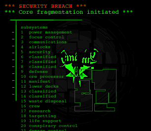 GEMINI-A SYBSTEM 12: Incoming Message ]cat#15566/76.12d Message Begins ]This is Hermes [unconfimed] The transport ]fail£ed midway through sequencing. You are ]lucky to be# alive. All your weapons are ]still here on board. If the tra__nsporter ]can be fixed, I will sen{d them on to you. ]Gemini-A kno%ws more of wh@t happened — ]listen careful=ly to her for instructions. ]This is Hermes [unconfimed] Out. > Our {..my?} weapons status is sadly true. We are currently operating as a series of AI subsystems to attempt to fend of electronic attack. As you may have already realised, SUBSYSTEM 9 has been compromised and nolonger has control over the station’s defense drones. > SUBSYSTEM 12 doesn't have much of a map anymore, so try SUBSYSTEM 11 immediately upstairs from this position. Take shaft L2 to get there. I’ll {..we’ll} fill you in on where to get some weapons then. > (you could try asking some of the crew nicely of course) GEMINI-A OUT