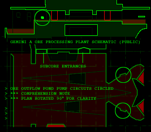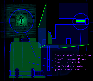 > Well, it looks like your job has just got a bit more difficult. The core-control room door would appear to have been blasted shut by our verminous friends. They are doing things in there that they don't want you interrupting. > You can still get in via the sub-core, however getting to the sub-core is the difficult bit. You will have to go through the ore-processor and then hit the emergency pump override switch located just before you fly out into the ore-outflow pond. There are 2 (two) switches, but only one overrides the pumps. I {we} cannot access records which indicate which is which. Try both if you can keep up with the current. The correct one will flood the pond so that you can swim across to the sub-core. No doubt they thought no-one would be so stupid as to do this. > Luckily, you are.