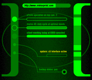 Congratulations on finding this terminal! I've sure had fun making these levels for Bungie's map making contest, and I hope you've had fun playing them. Since the contest rules specified a scenario no longer than three levels, I've tried to cut the story off at an interesting point. I plan on finishing the story in a second scenario that I hope to complete some time in the first quarter of 1997. Look for it on my web site at http://www.misterprint.com. It will be available somewhere off of the "Diversions" page, assuming that I don't overhaul the web site by then! Thanks to Bungie for making such a great game and fantastic editor. And thanks to all of those people who have been making home-brew levels for games like DOOM, Hexen, and Marathon all these years; I am sure I have borrowed an idea or two from everything that I have seen and played.