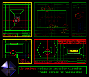 ::Important Information:: To actually get inside the main building, you will need to get past two security doors. There is a Power Grid Control Chamber that you can use to deactivate certain areas to confuse the locking mechanisms of the security doors. You will have to find the path inward to the Entry Room. Once inside, you will not be able to go out from where you came. The destruction of certain circuits used to get in closes your way out. After inside, you will need to "Gain Access" to the Gatekeeper Computer. Once you do this, you will be sent to another part of the building. Once inside your first point of importance is to eliminate that nasty EFB Electric Force Barrier. When you get rid of that you will then get supplies from home and BOB reinforcements. But Commander Dent will brief you more on that after you get inside. He is working on overriding a computer in there. Somewhere.