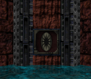 As I've told you before, I have more information about the strange purple planet. It's called Sigma, home world of the Stak'pha Pfhor. In honor of the adolescant greedy intentions of all high-ranking Pfhor. It's completely sheltered from High Command before and forever after it's destruction. While we were tooling the galaxy for the Stak'pha, they constructed many temples, citadels, and complex underwater passageways in offering to their Boring Religion's equivalent of Beelzebub. Our first attack here four months ago dramatically changed the area, causing water to seep and fill into the temple. As you can see at the picture on your left, this switch controls the Maglocked door. I still don't have the code to unlock it, so you're gonna have to try finding control circuitry and smashing it.