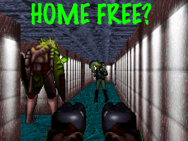 Hey, you found the little secret spot tht nearly everyone has on thier last level to convey some dorky little message. Well, here it goes. I'd like to thank myself because I made this map (I put a lot of time into this by the way). I'd like to thank my cat, "Mr. Pants" because he wakes me up at 5:30 every morning. I'd also like to thank "Sushi", my dog, because she has no hair on her butt and I feel soory for her. And finnaly, I'd like to thank "Logging Conference", "Jenifer Sucks" or whatever Brandt decides to call himself on network games, because he said I couldn't make a map of my own. I hope you like this map and all that good stuff, so have fun and always remember...
