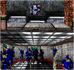 GOOD WORK, I GUESS. I couldn't see it cuz I gots no eyeballs, just a motion sensor that tells me when they're dead as fried chicken. NEXT, YOU WILL BE GOING TO A PLACE THAT LOOKS LIKE THE INSIDE OF A SPACESHIP, BUT IT'S NOT. I HEARD THE ARCHITECT MUMBLING SOMETHING ABOUT "WANTING TO USE THE ALIEN TEXTURE SET" (Whatever that is) "DESPITE ITS INAPPROPRIATENESS" AS HE WAS WANDERING BY HERE EARLIER. I'm pretty sure you'll arrive safely this time, but watch out anyway.
