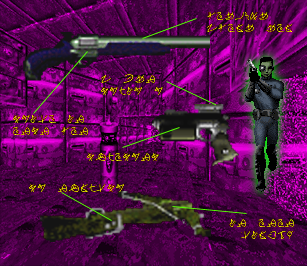 I have been unable to fully access the Pfhor computer net. What I have found suggests we're in trouble. Your violent forays have caused the Pfhor to increase their baseline security measures. High-Density Laser Barriers and activated security switches now restrict access to vital zones. To override these restrictions, you must obtain Security ID cards. My research suggests these are carried by the red-suited Pfhor security personnel.
