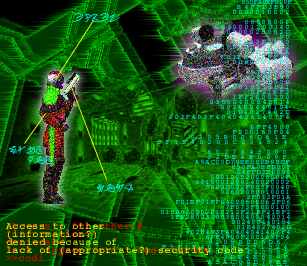 ***Unknown system access*** ...e'll make you ouch, Hal. He's got real guile, Why Lady, Did you have it daily? Airlock Love, No oxygen, Suffoc*3$%76... ***Unknown system error*** <<End of (message?)>>