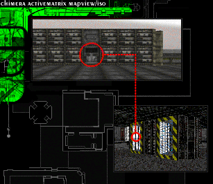 shel.override ----------begin external feed The door on your left will take you to the upper hull exterior of the Chimera. Just keep running straight ahead until you reach the structure shown here. Inside the building you should run into these two teleporters. The circled one will take you to the control switches of the main reactor, where we can shut down the reactor and prevent critical mass from being reached. ----------end external feed end.shel/burst