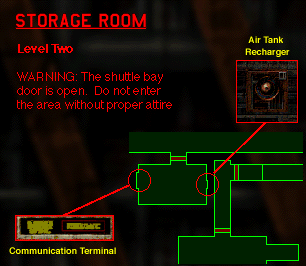__________________________________________ Commander Hayes and Lieutenant O'Malley have done a commendable job of herding the Aliens towards the Shuttle Bay. __________________________________________ Currently, you are in an access corridor that leads to the Shuttle Bay. The Aliens have been removing ship supplies from there and as a result, the bay door is open to space and the immediate area is operating under vacuum conditions. __________________________________________