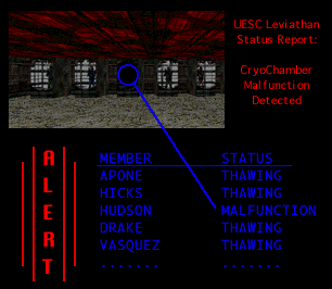 ___________________________________________ So far, so good. You at least seem to be able to follow simple directions. However, we seem to have a problem with one of the stasis chambers. It looks like Hudson's going to remain a frozen slab of meat unless we repair his cryochamber. Directly behind you is a door that leads to a switch. Flipping the switch will allow you to enter the maintenance corridor behind the cryochambers. Grab the repair chip that I'll put there and put it in the slot behind the malfunctioning chamber. ___________________________________________
