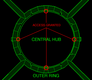 Origin: Base commander Dest: All Pfhor personnel SECURITY ALERT: Security lockdown circuits destroyed. Intruder now has access to central hub of base from outer ring. Destroy the intruder at all costs. Our juggernaut units are being decimated in their service bays. Six months vacation time to the Pfhor that kills the intruder.